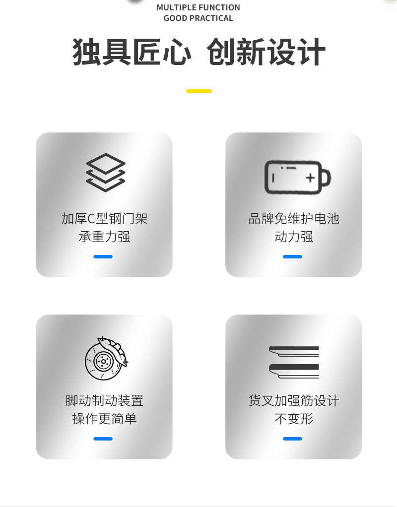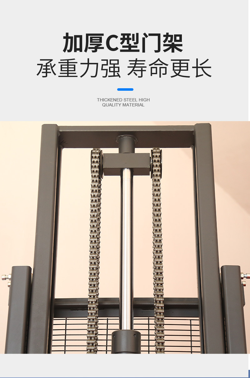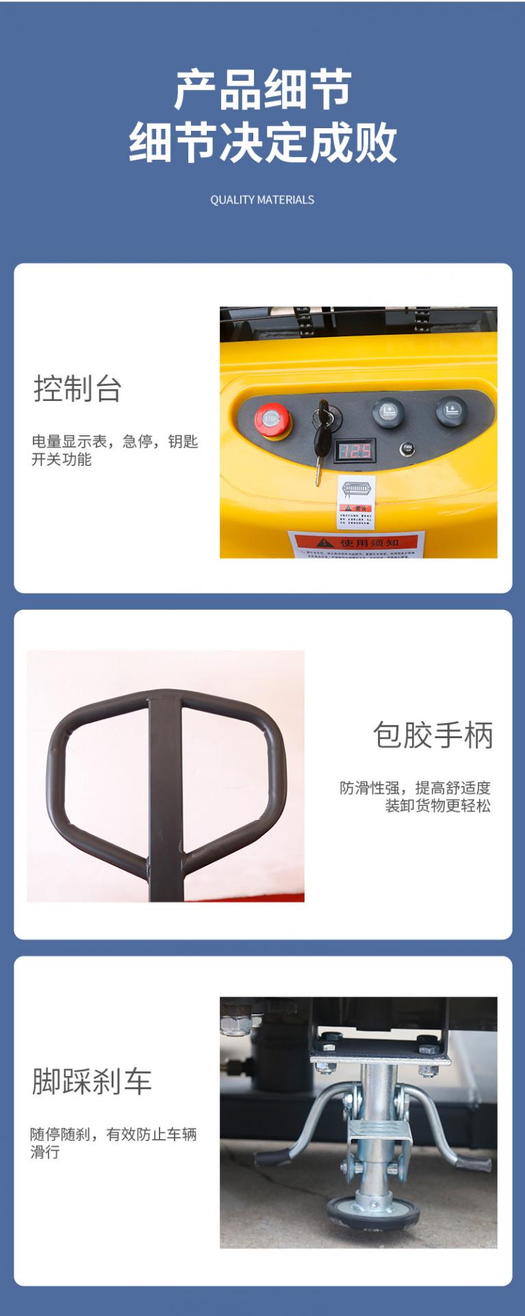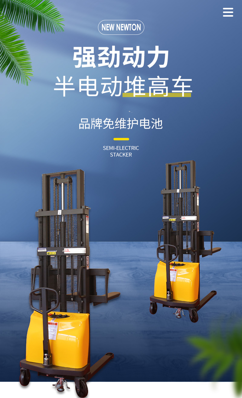 半電動電動堆高車是一款經濟實惠的堆高車,配備重載荷油缸,高起升,車體設計堅固,承載力強。廠家直售,提供批發電動堆高車價格。半電動電動堆高車采用智能電量顯示儀表,實時監測電量。半電動堆高車是電動叉車的一種,是電動升降,人力推拉行走的一款托盤堆垛車。標準載重范圍最大可達2噸,升高3.5米。非標可定制寬叉腿,加長貨叉,改三節門架等.