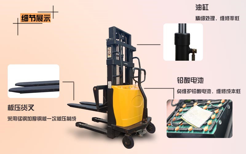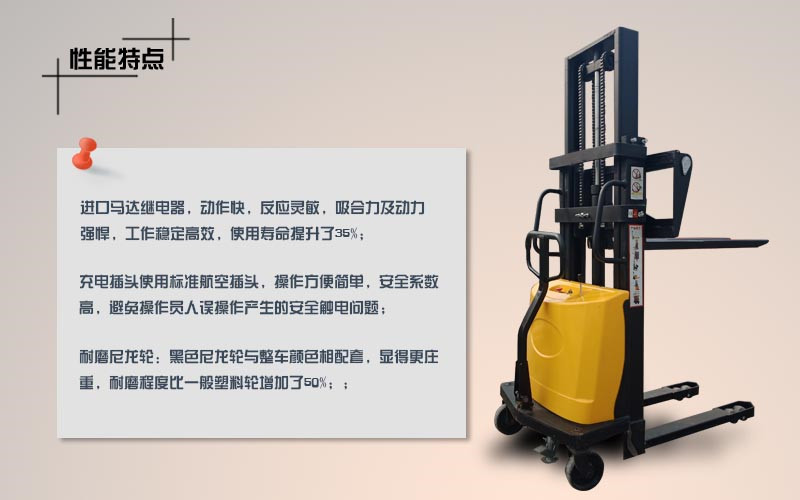 半電動堆高車電動起升,可減少使用者的疲勞感,車身小,適用于狹窄空間。電動堆高車生產(chǎn)廠家定義半電動堆高車為經(jīng)濟實惠型堆高車,半電動堆高車廠家報價也相較于全電動堆高車而言更適合大眾。產(chǎn)品規(guī)格:
