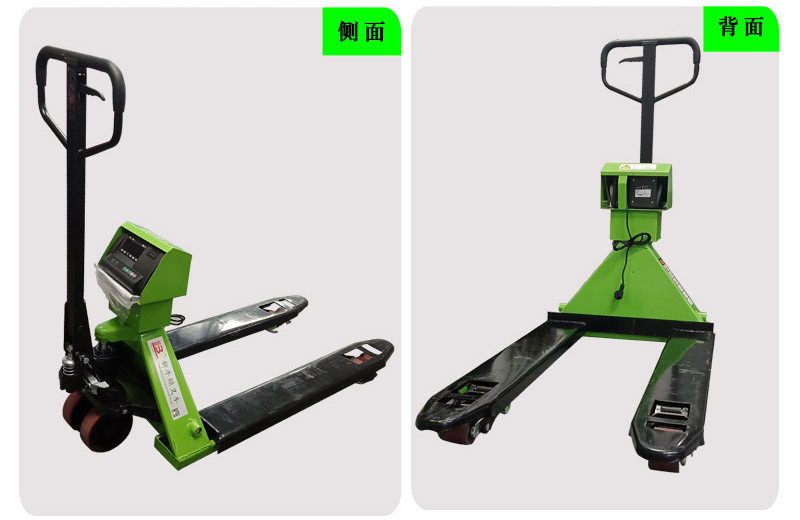 電子秤手動液壓搬運車帶有稱重儀,重量可精確到正負0.5KG。